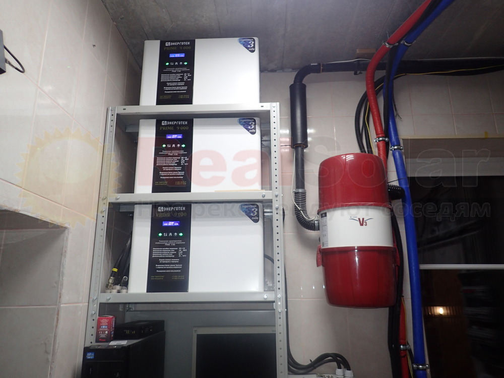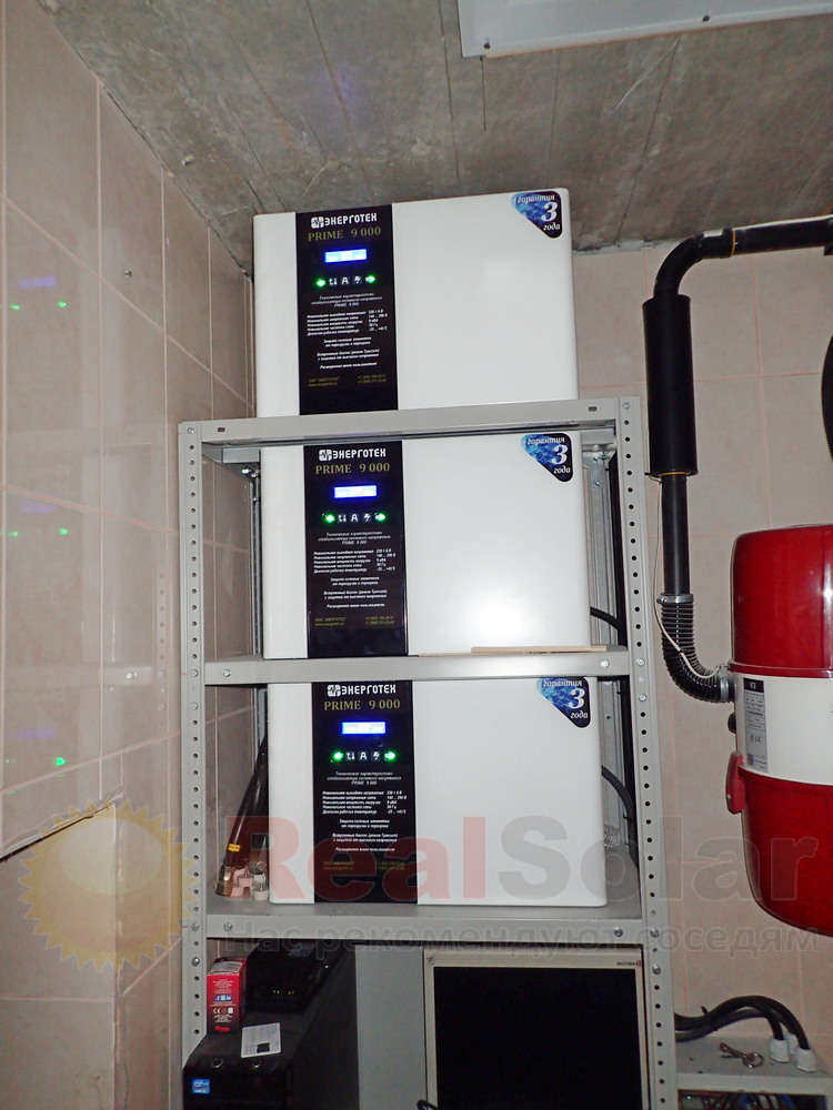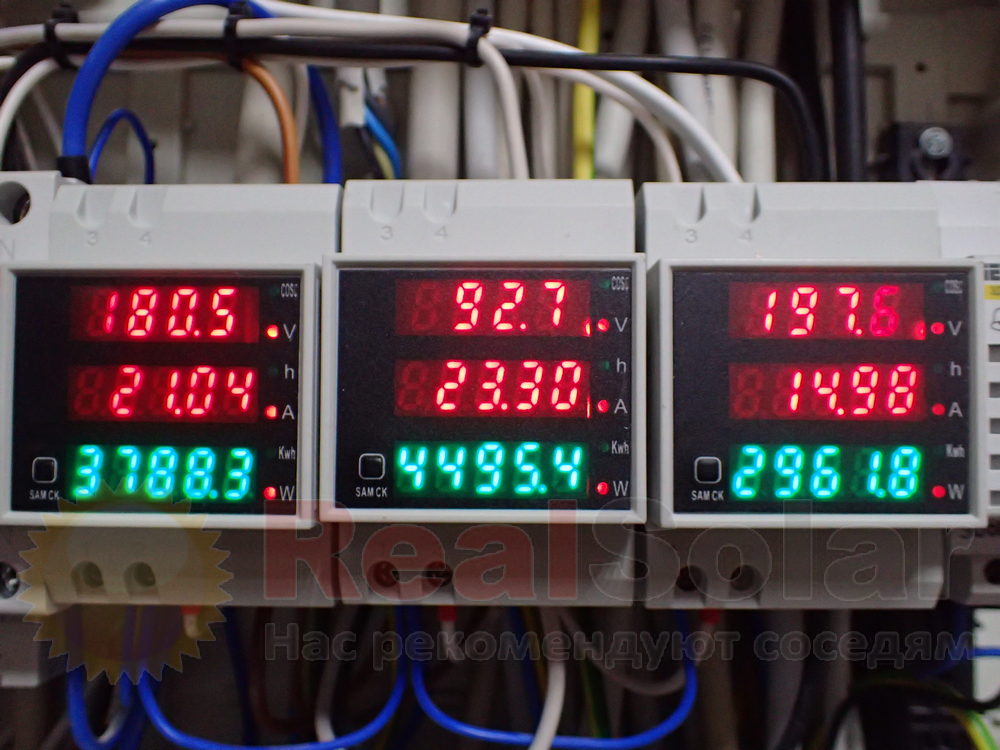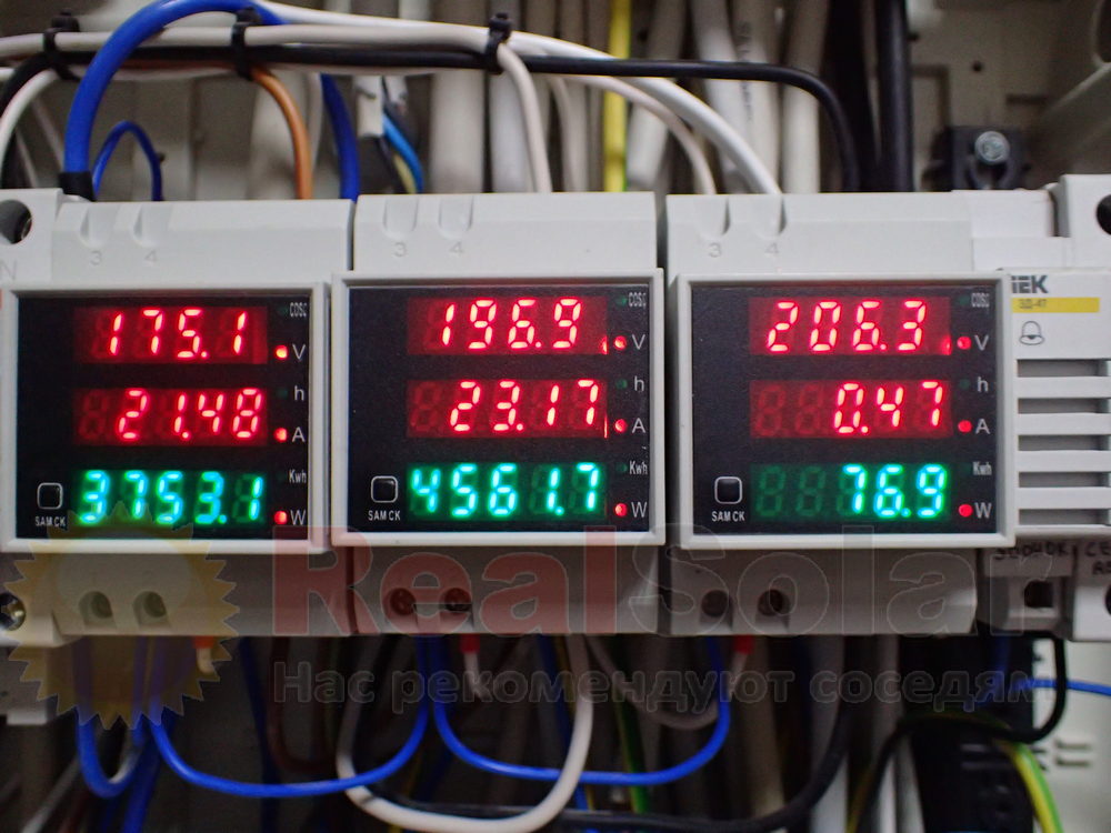 Беспорядочные колебания напряжений в сети приводят к неправильной работе техники в любом доме. Заказчик обратился в нашу компанию с просьбой решить проблему низких напряжений зимой, когда по всему поселку соседи включают отопительную технику. Напряжение в сети падает до 140 вольт, это видно на фотографиях счетчиков энергии. Для нормальной работы электроприборов в доме это недопустимо. Были предложены стабилизаторы премиум сегмента, высокоточные, с точностью стабилизации 3%, мощностью 9 кВА. Теперь вся техника в доме будет запитана хорошим напряжением.