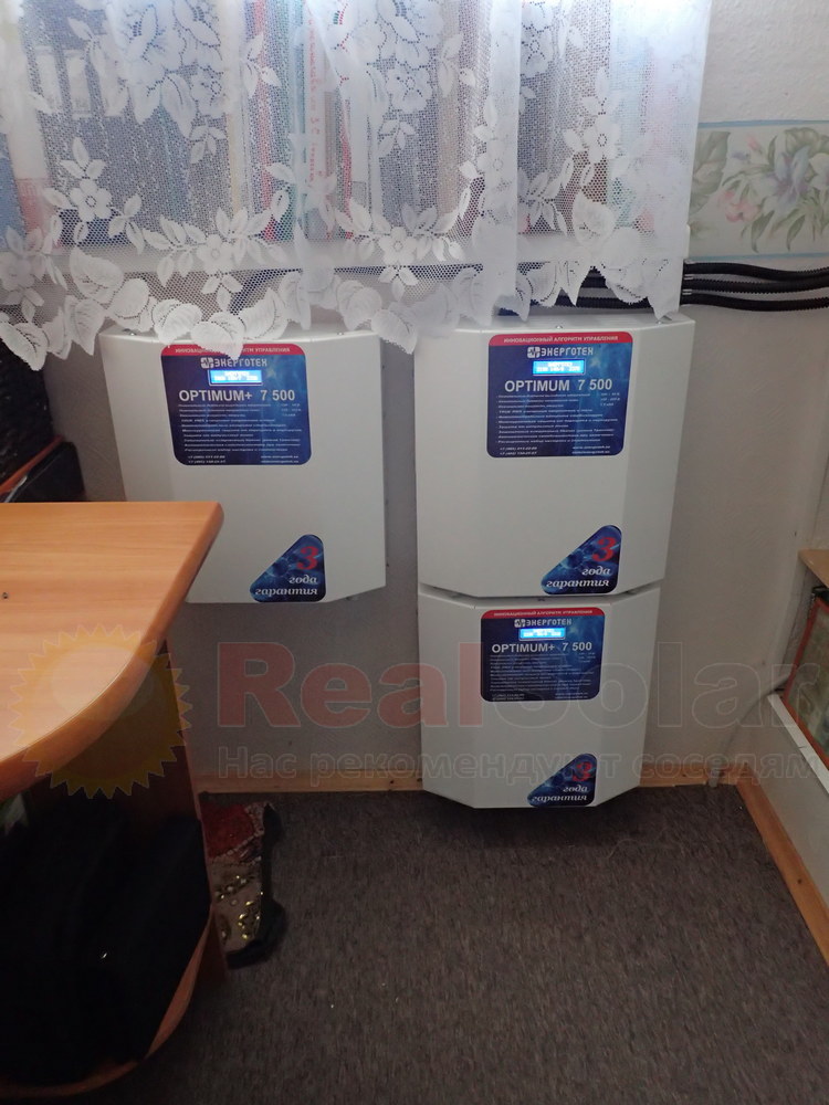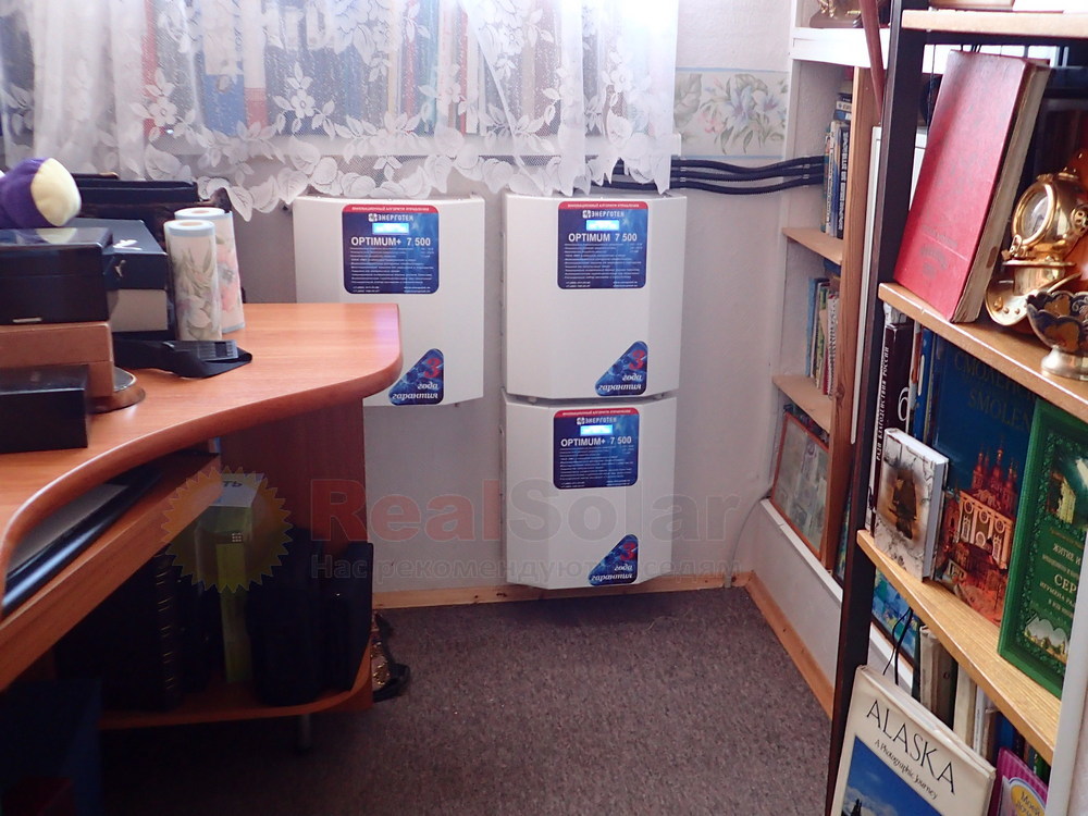Были предложены стабилизаторы Энерготех OPTIMUM 7500, c большой скоростью стабилизации за счет высокоскоростных тиристоров, мощностью 7,5 кВА. Теперь вся техника в доме запитана хорошим напряжением.