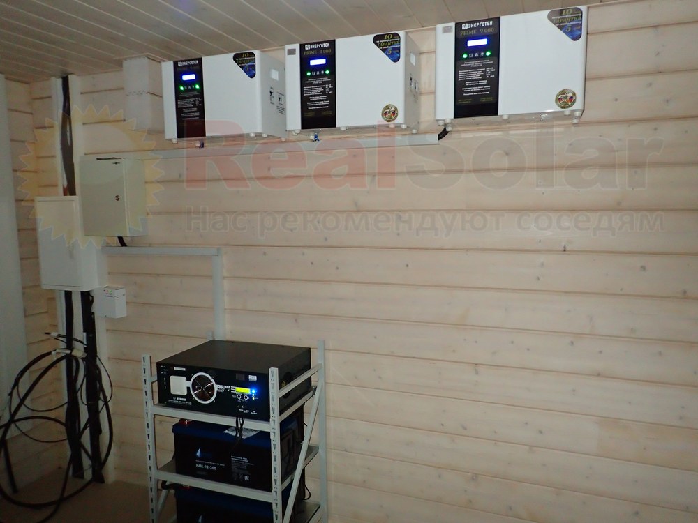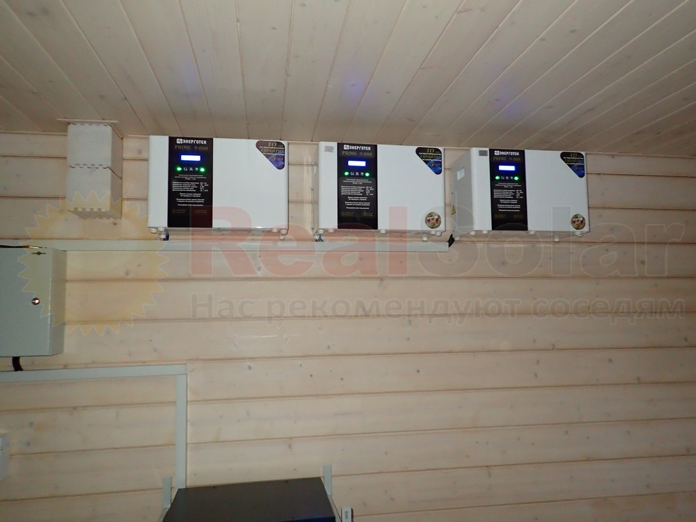 Для бесперебойного электропитания загородного дома была установлена система резервного электроснабжения инвертор-аккумуляторные батареи и дополнена установкой быстродействующих тиристорных стабилизаторов Энерготех PRIME 9000