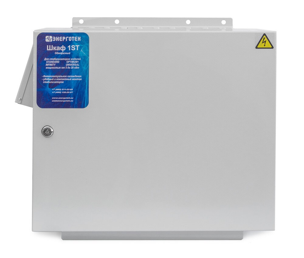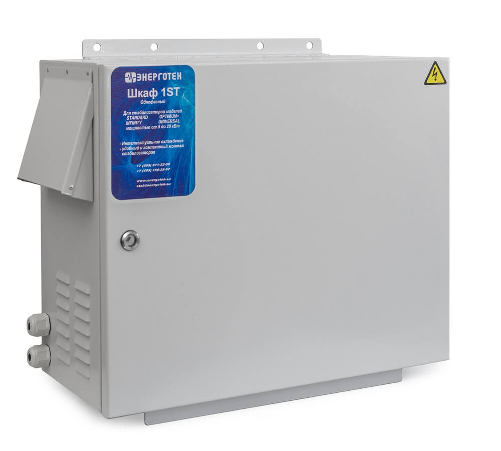 Всепогодный шкаф 1F STANDARD (в дальнейшем шкаф), предназначен для размещения и подключения однофазных стабилизаторов напряжения моделей STANDARD, OPTIMUM+, UNIVERSAL и INFINITY внутри и вне помещений.