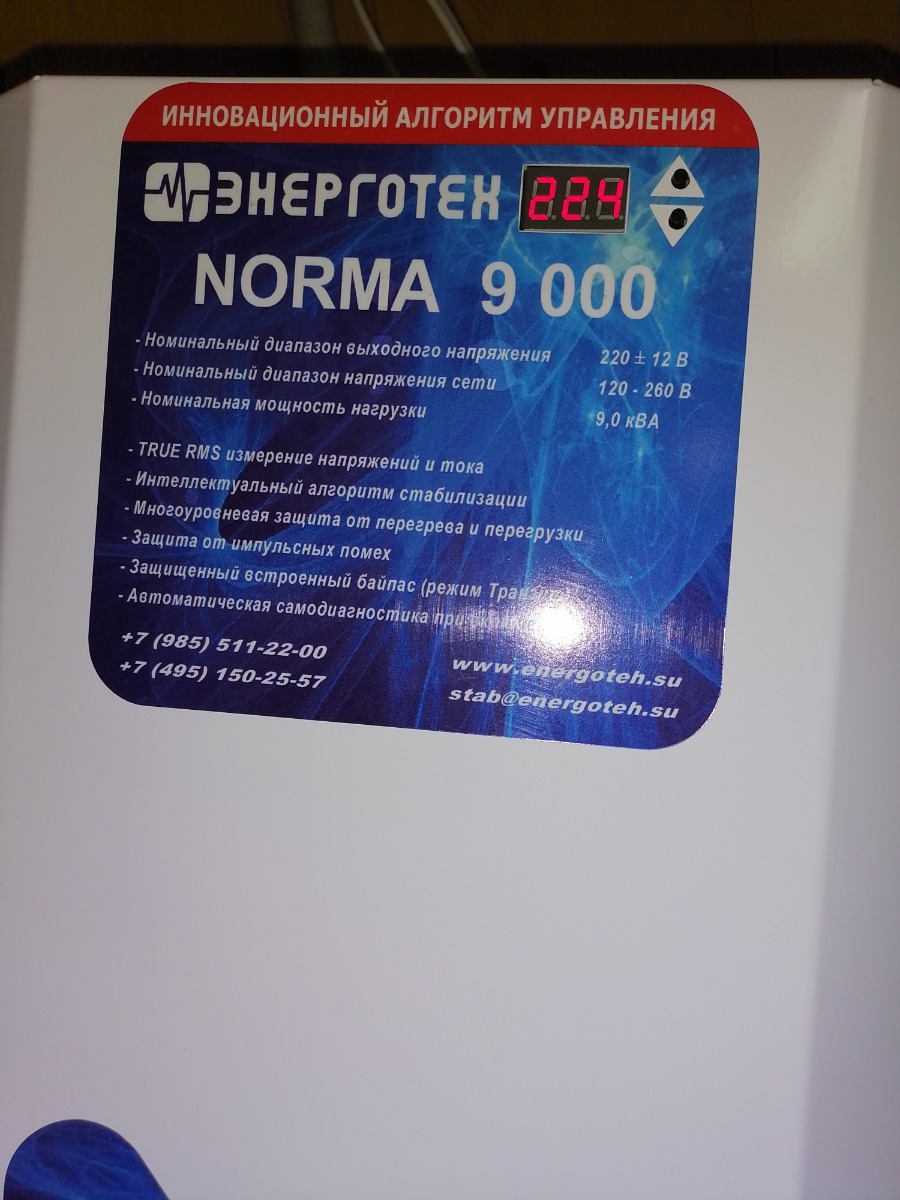 В стабилизаторе напряжения Энерготех NORMA 9000 реализованы следующие возможности: