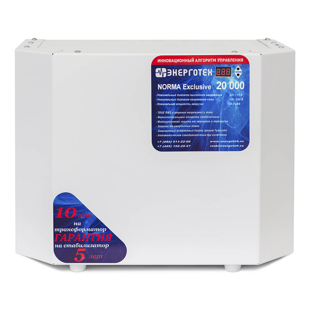 В стабилизаторе напряжения Энерготех NORMA Exclusive 20000 реализованы следующие возможности: