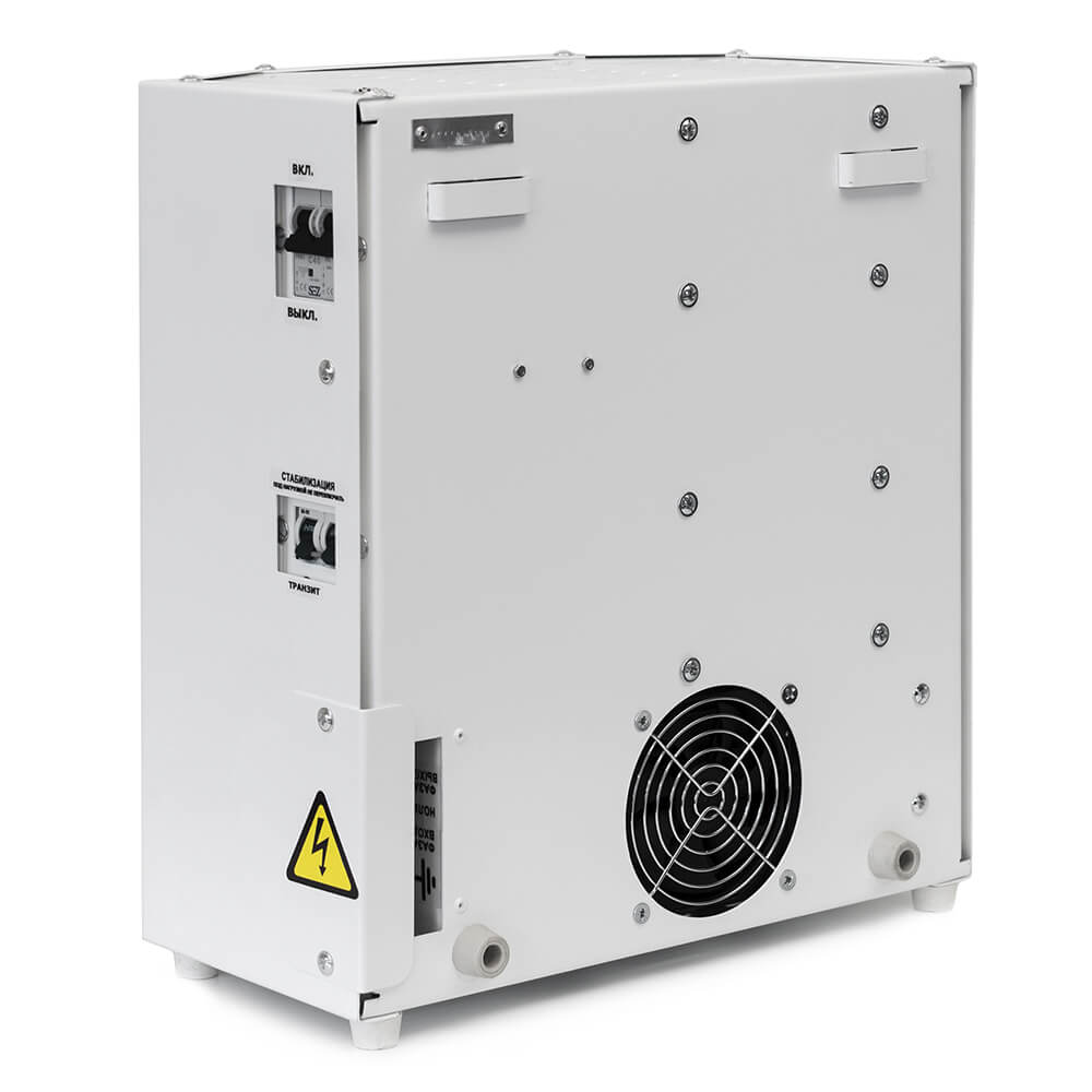 Трехфазные стабилизаторы работают с трехфазной сетью 380 В. Как правило, они рассчитаны на большую нагрузку (промышленное оборудование, офисы, квартиры, загородные дома). Трехфазный стабилизатор представляет собой три однофазных стабилизатора с общей защитной электроникой.