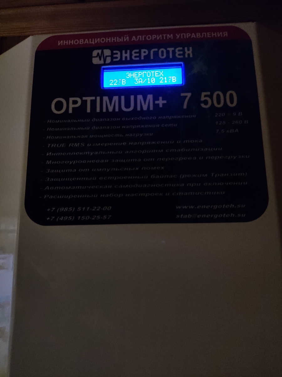 В стабилизаторе напряжения Энерготех OPTIMUM 7500 реализованы следующие возможности: