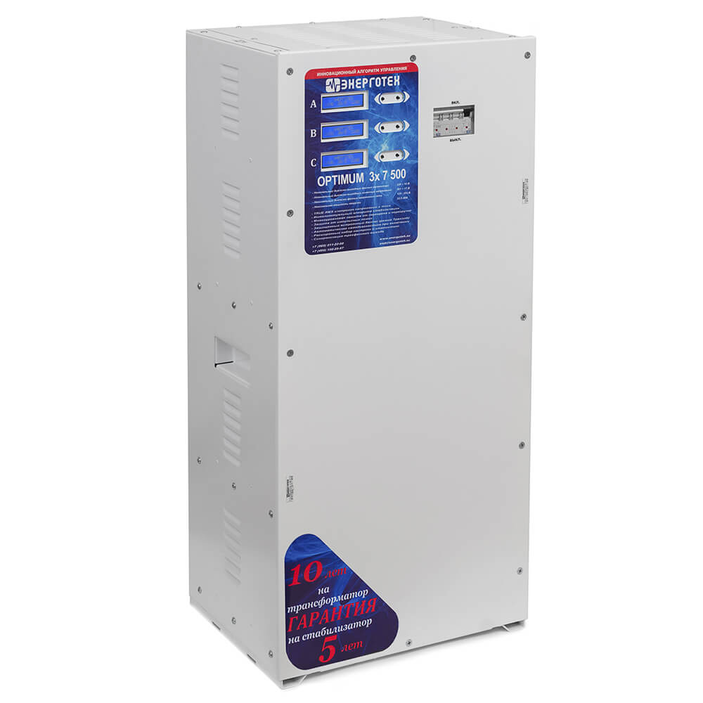 В трехфазном стабилизаторе напряжения Энерготех OPTIMUM 7500 реализованы следующие возможности: