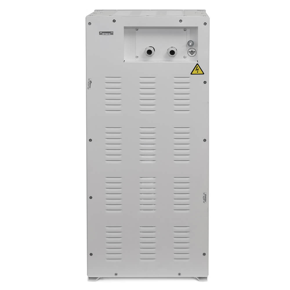 Основой тиристорного стабилизатора являются автотрансформаторы с 12 ступенями стабилизации каждый, которые коммутируют высокоскоростные тиристоры. Благодаря использованию электронных компонентов достигается надежность и высокая скорость реакции на колебания сети. Дополнительным плюсом является наличие режима "ручной байпас", который используется при аварийных или ремонтных работах.