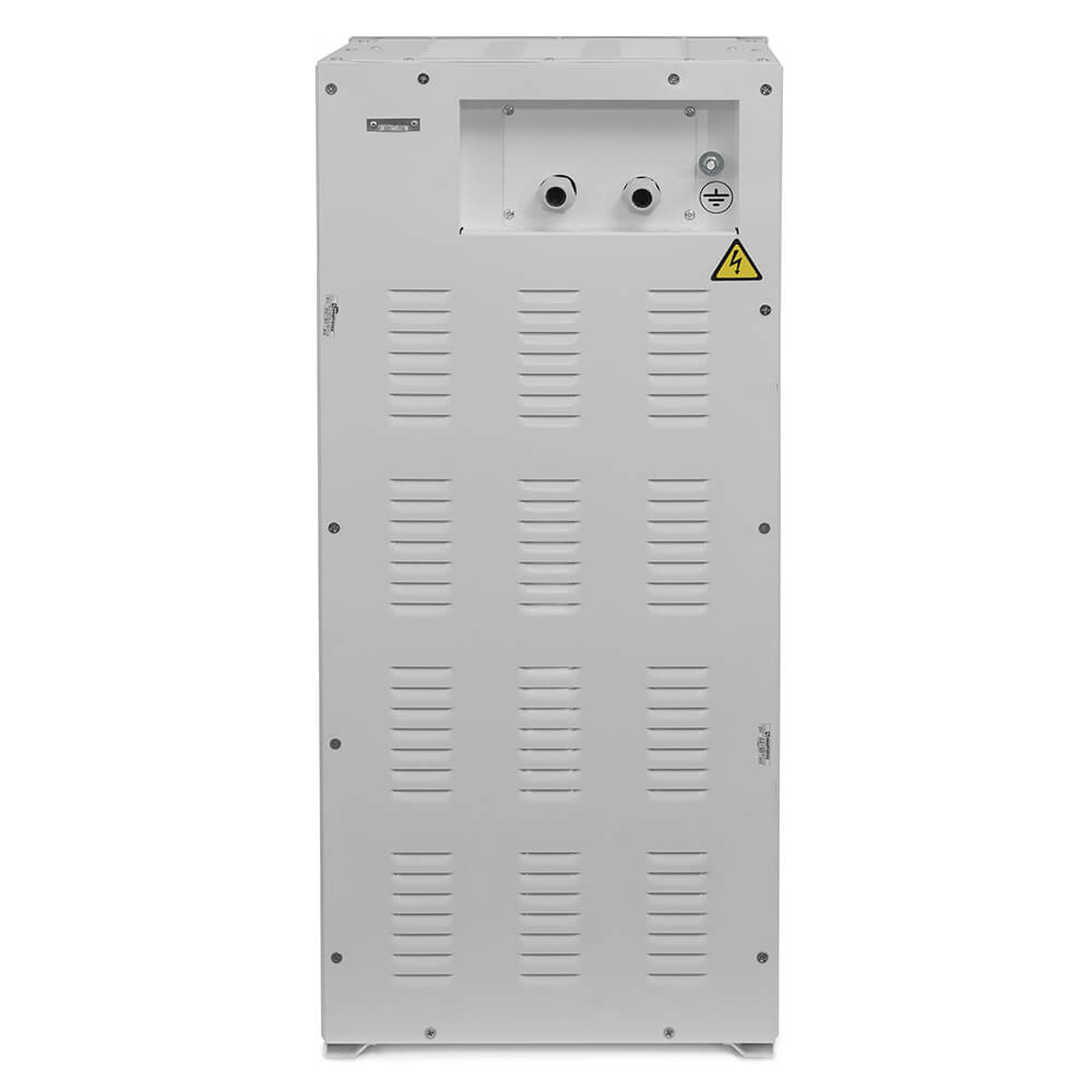 Основой тиристорного стабилизатора являются автотрансформаторы с 12 ступенями стабилизации каждый, которые коммутируют высокоскоростные тиристоры. Благодаря использованию электронных компонентов достигается надежность и высокая скорость реакции на колебания сети. Дополнительным плюсом является наличие режима "ручной байпас", который используется при аварийных или ремонтных работах.